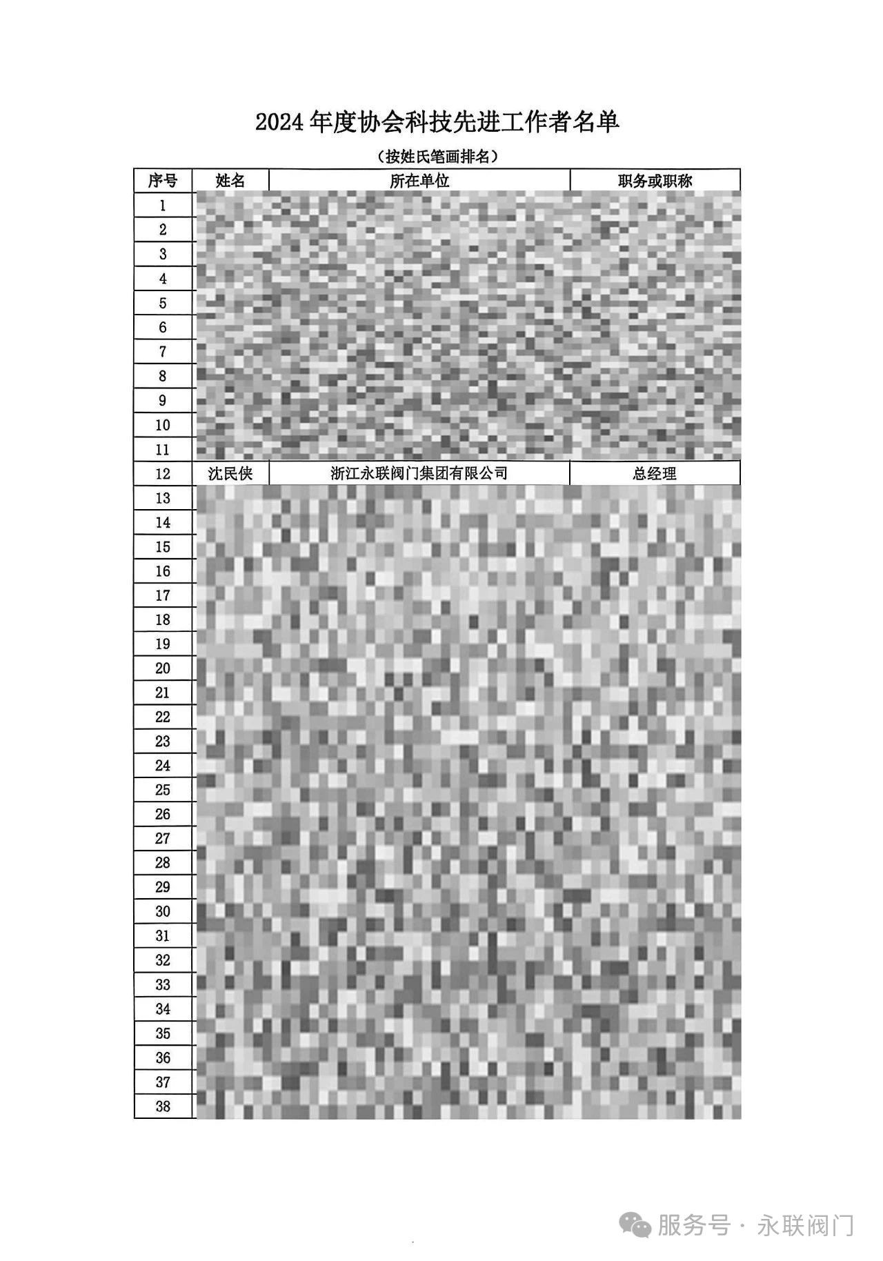 为表彰先进,树立榜样,激发科技工作者的积极性、主动性和创造性,浙江省泵阀行业协会日前开展了“2024年度科技先进工作者评选活动”,浙江永联阀门集团总经理沈民侠荣获浙江省泵阀协会优秀“先进工作者”荣誉称号。