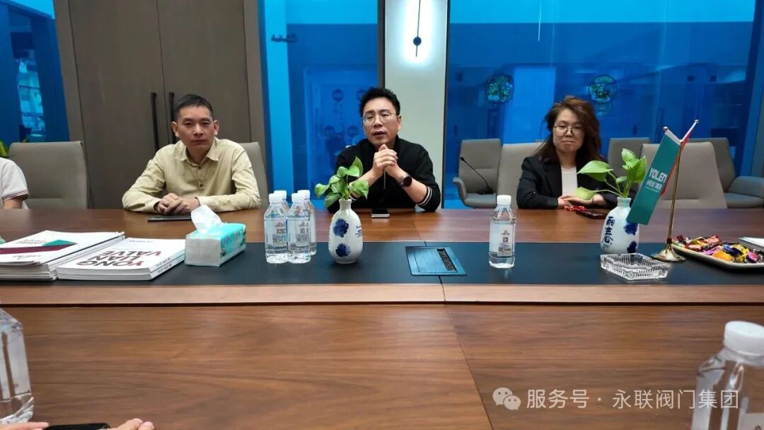 仪式伊始,沈民侠总经理对项阳阳博士一行的到来表示热烈欢迎,并衷心感谢温州理工学院数据科学与人工智能学院长期以来的支持。他提到,自2024年受聘为该校“四千精神”创新创业导师以来,与学院一直保持着紧密的合作关系。沈民侠指出,永联阀门集团始终将人才培养与技术创新置于企业发展的核心战略位置。此次共建实习实践基地,是公司推动产学研深度融合、培养高素质应用型人才的关键举措。未来,集团将持续投入优质的技术、设备和产业资源,为学院师生打造一流的实践平台,切实推动“校企协同、优势互补、资源共享、共赢发展”的目标落地。
